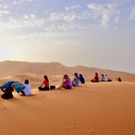 Vanuit onze behoefte te bezinnen, het hectische leven stil te laten vallen, en onze eigen stem diep van binnen weer te (laten) horen gaan we wederom 5 dagen in stilte lopen door de eindeloze leegte van de woestijn. We volgen onze adem en het ritme van de Sahara.
