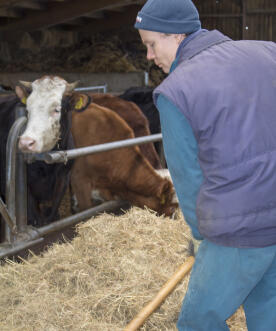 'Vanwege mijn psychische problematiek zocht ik in 2011 naar een plek waar ik met meer gelijkgestemden kon wonen en waar ik enige vorm van zorg zou hebben. Ik woonde toen al tien jaar op mezelf in Schagen, maar vanwege mijn dwang- en angststoornis ging dat niet meer. Gelukkig kon ik hier op Dijkgatshoeve terecht. Mijn appartement kijkt uit op de weilanden en dat vind ik prettig, want het geeft me rust. Ik werk hier ook, in de stal bij de koeien. Dat is het meest vertrouwd, omdat ik ben opgegroeid op een regulier melkveebedrijf, maar ik vind het ook het leukste om te doen. Samen met wat anderen geef ik de koeien hun voer en strooi ik de stallen op. Verder onderhoud ik de machines en doe ik trekkerwerk. Naast mijn werk in de stal begeleid ik een aantal mensen die op de twee groepen beneden wonen. De meeste mensen kunnen wel zelfstandig werken, maar we hebben ook een jongen met het syndroom van Down. Hij vraagt best veel aandacht en ik vind het leuk om hem te ondersteunen. Verder begeleid ik op vrijdag altijd iemand die verstandelijk ongeveer drie jaar oud is en continu hulp nodig heeft. En op zaterdag, als ik boodschappen ga doen, neem ik iemand van de groep mee, een man met een verstandelijke beperking en dan gaan we naar Van der Valk in Wieringerwerf en drinken we een kop koffie. Dat vinden we allebei gezellig. Dat ik het leuk vind om met mensen te werken, ontdekte ik eigenlijk toen ik op een zorgboerderij in Schoorl werkte. Voordat ik op Dijkgatshoeve terecht kwam, werkte ik als bedrijfsadviseur in een melkveehouderij. Toen dat niet meer ging ben ik aan de slag gegaan bij Scorlewald. Ik woonde toen nog wel op mezelf maar deed daar maatschappelijk werk. Daar ontdekte ik dat ik er talent voor heb. En ik ben blij dat ik dat hier weer in kan zetten.'