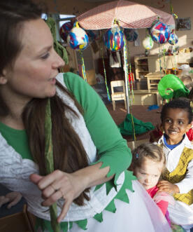 Natuurlijk gebeurt het ook dat je al een onrustige groep hebt en je pas wanneer je je afvraagt hoe dat komt opeens voelt dat je eigenlijk heel moe bent. Of gestrest omdat je weet dat de ouders alweer bijna voor de deur staan, terwijl je je sprookje nog moet doen. In zo'n geval ga ik eerst terug naar mezelf, zing ik een liedje of herhaal een rijmpje en voor ik het weet is de rust weergekeerd. Dat nabootsenswaardig zijn, daar lag en ligt voor mij een uitdaging. Of liever, een hoge verantwoordelijkheid, want het vereist dat ik me keer op keer bewust bent van hoe ik er voor sta en of ik wel als voorbeeld kan dienen. Echt ontzettend leerzaam dat proces. Want het helpt je niet alleen als juf maar ook als mens te groeien.